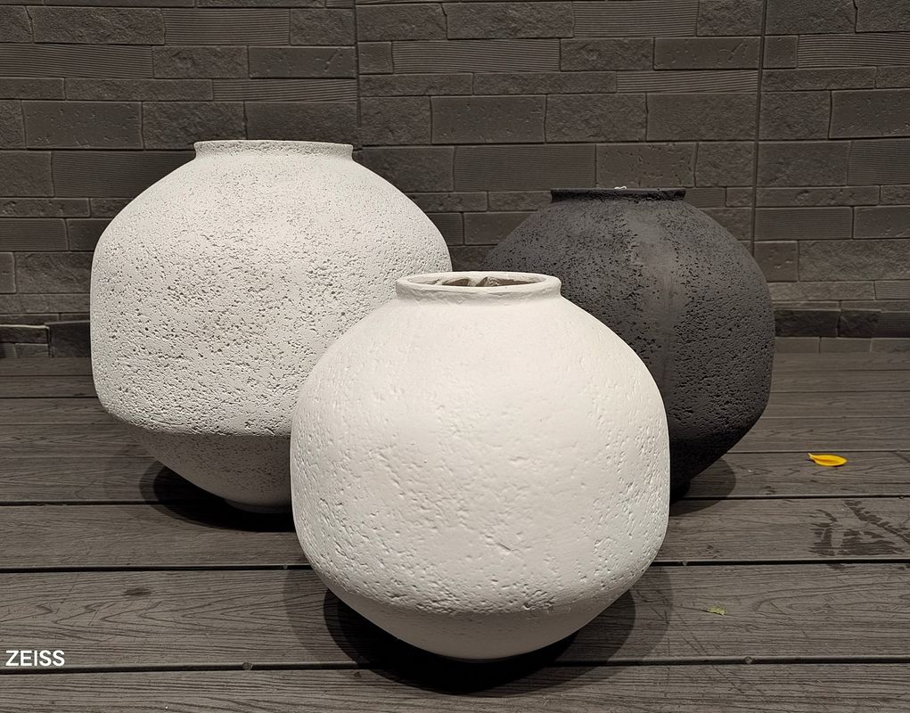 Kil ve fiber karışımından üretilen bu saksılar, yüzeylerinde görsel çekiciliklerine katkıda bulunan benzersiz bir doku sergiler. El oyması bitirme, modern görünümlerini daha da geliştirerek onları şık dekor öğeleri olarak öne çıkarır.